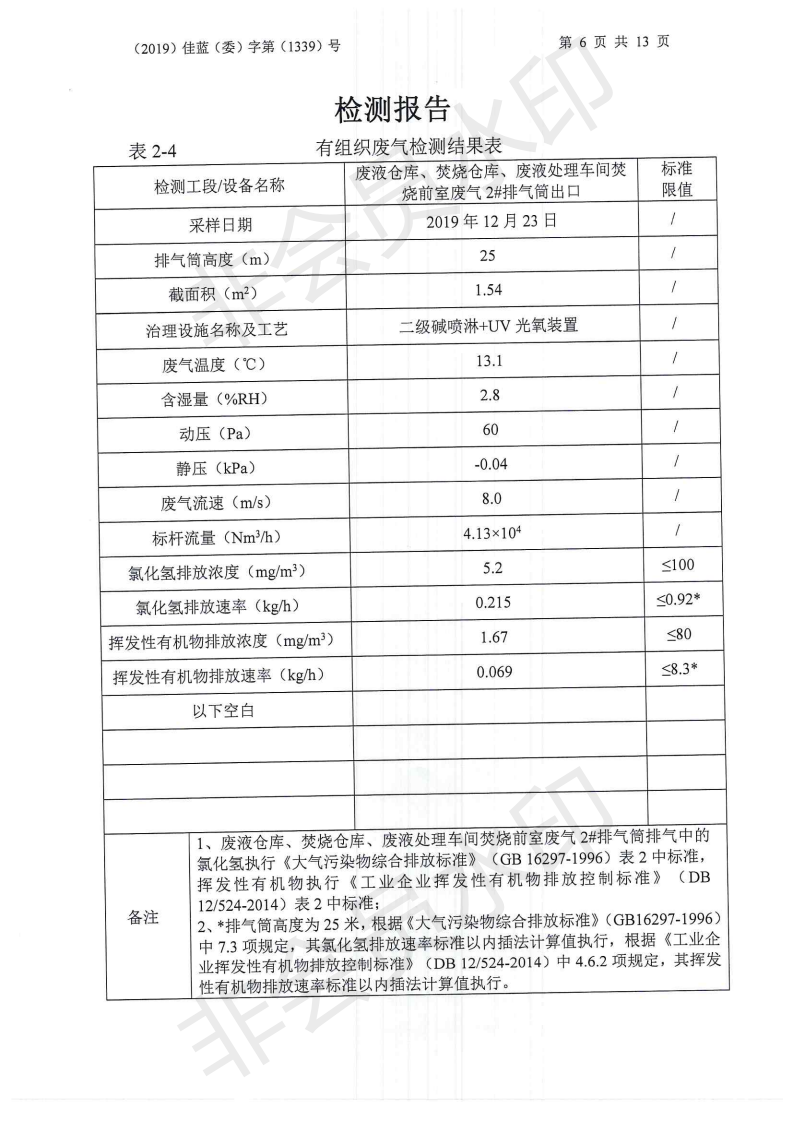 2019年12月我司委托常州佳藍環境檢測有限公司對本司廠區范圍內的廢水、有組織廢氣、無組廢氣、噪聲等進行檢測并提供檢測數據,檢測時,本司正常生產運行。以下為常州佳藍環境檢測有限公司提供檢測報告。